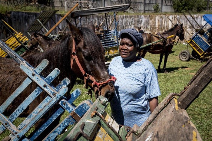 Mãe que sustenta quatro filhos (uma delas na Ufrgs) e uma neta de 18 anos, Tereza entregou chorando o cavalo Negão, companheiro há uma década.