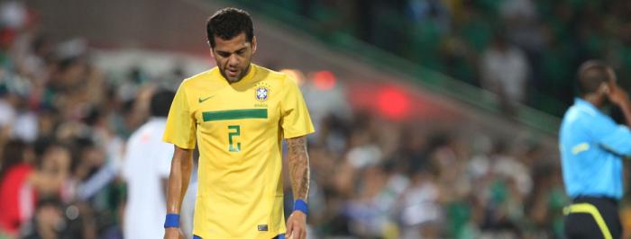 Nos 45 minutos iniciais, Daniel Alves foi expulso. O lateral já tinha cartão amarelo, e levou o segundo ao cometer pênalti, defendido por Jefferson.