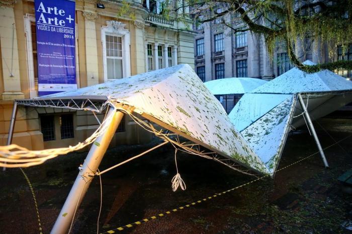 Durante a madrugada dessa quinta-feira, pedras do tamanho de ovos danificaram telhados no município em cinco bairros de Eldorado do Sul e em Porto Alegre, parte da estrutura da Feira do Livro foi danificada.