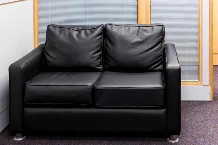 Lembrança - Sofá de dois lugares está presente em todas as agências da Flytour para lembrar onde o fundador dormia no seu primeiro emprego (Foto: Omar freitas)