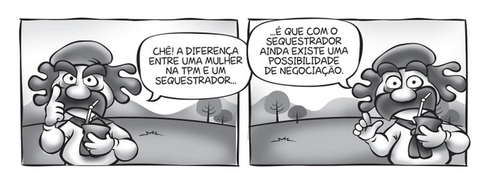- Bah, chê! Vocês dois não são de nada mesmo! Esses dias, eu fiz uma massagem com banha de porco na minha patroa. Ela ficou duas horas gritando!