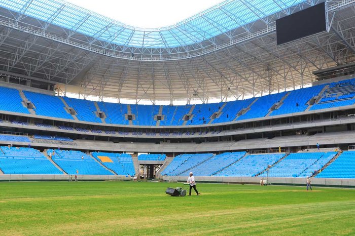 Com os demais integrantes do programa Sala de Redação, estive, ontem em visita à Arena do Grêmio. Já havia estado lá e fiquei perplexo com a grandeza da construção e do desenvolvimento da obra. É, sem nenhuma dúvida, um estádio de primeiro mundo. Com acomodações impressionantes em nível de conforto, além de ter todo o modernismo que se exige de uma obra dessas proporções.
