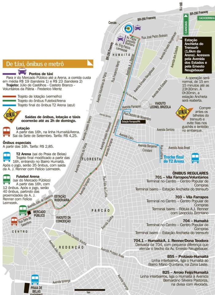 Troque o carro pelo transporte coletivo (trensurb, ônibus ou lotação). A BM teme que as ruas estreitas do entorno da Arena fiquem abarrotadas de carro.