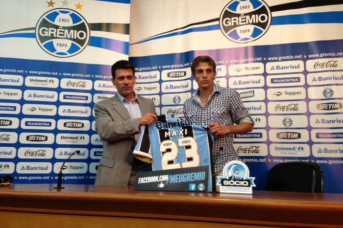 A direção do Grêmio apresentou na sexta-feira o jovem jogador uruguaio Maxi Rodríguez. Trata-se de uma ótima aposta, de um jogador de 22 anos e que, pelo li e ouvi, é o grande destaque do campeonato dos hermanos.