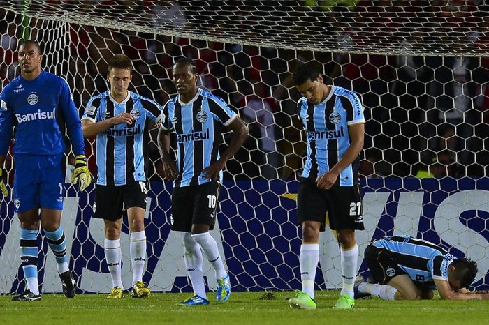 E, voltando à Libertadores, os brasileiros estão indo por água abaixo. Dois seis que começaram a competição, apenas dois - Atlético-MG e Fluminense - chegaram às quartas de final. O que me dava a esperança de que ontem à noite, o Grêmio pudesse quebrar essa rotina atual dos clubes do país, ser enfim a zebra brasileira. Foi para campo com sua escalação titular, com suficiente motivação em todos os sentidos, o que nos fazia esperar pela classificação, mesmo que fosse com um modesto empate.