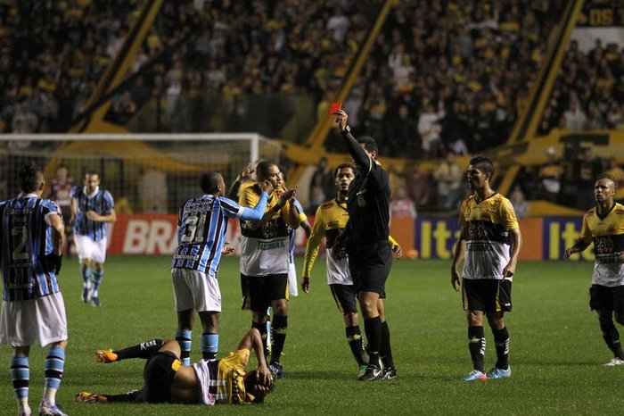 O Criciúma, é verdade, tinha iniciativa, tentava, mas não obtinha o resultado esperado. Até acontecer a primeira expulsão. Rigorosa, injusta e decisiva, pois saiu um atleta que vinha fazendo boa atuação.