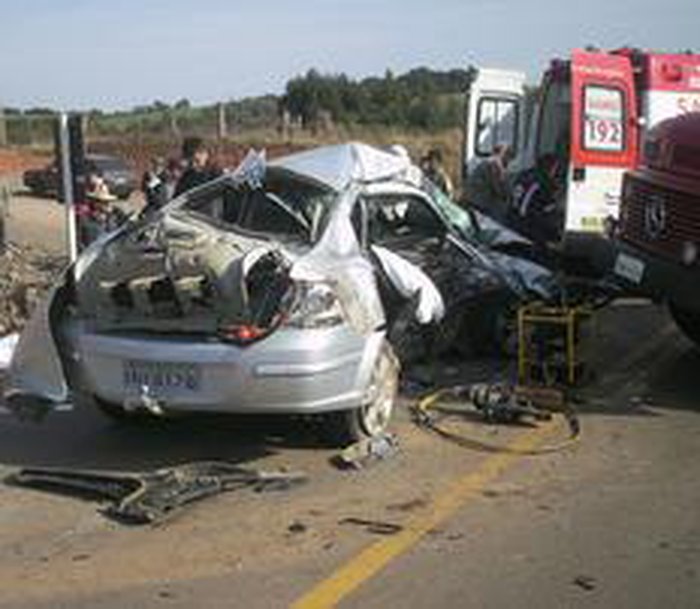 Barros Cassal - Uma colisão frontal entre um Gol e um Vectra causou a morte de cinco pessoas na manhã de domingo, no km 252 da RSC-153. Duas pessoas ficaram feridas e presas nas ferragens. O Gol era conduzido por Ivo Soldi Canabarro, 65 anos, e tinha como passageiros sua esposa, Denoli Pinheiro Canabarro, 58 anos, e seu neto David Canabarro da Mota, três anos. Todos morreram na hora. Já o Vectra era conduzido por Fernando Toigo, 26 anos. Ele e a namorada Geise Franciele dos Santos, 17 anos, morreram no local.