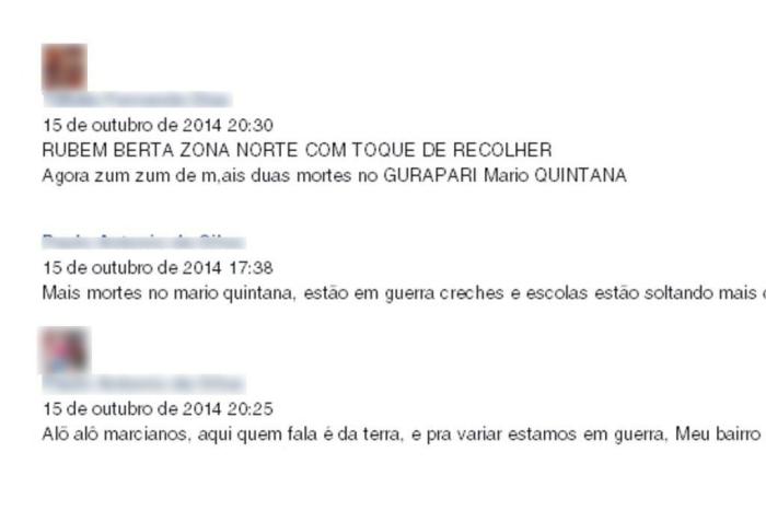 Com três viaturas do 20º BPM permanentes durante o dia, reforço de efetivo do 11º BPM e 19º BPM à noite e auxílio de helicóptero, a Polícia Militar de Porto Alegre diz que não vai sair de dentro do bairro Mario Quintana até "acabar com boatos de toque de recolher". O comandante da operação, tenente-coronel Marcelo Tadeu Pitta, garante que grupos criminosos não estão impondo restrições à rotina do bairro da Zona Norte.