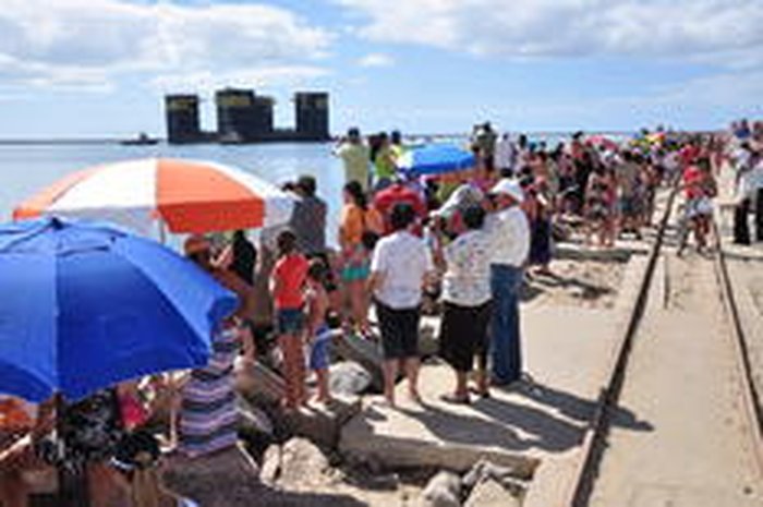 Em processo de entrada no porto de Rio Grande, no sul do Estado, o casco da plataforma P-55 já é visível para quem está na orla do balneário Cassino. As quatro torres que moldam a estrutura indicam a presença da embarcação a poucos quilômetros da praia.