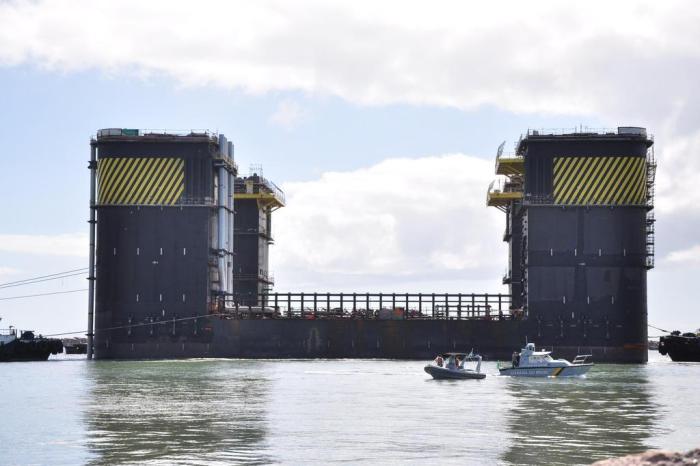Maior plataforma semissubmersível brasileira, a P-55 chegou no porto de Rio Grande na manhã desta segunda-feira