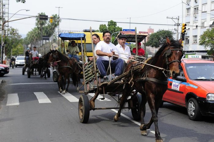 Carroceiros de Porto Alegre realizaram protesto em frente à prefeitura municipal, no final da manhã desta segunda-feira, para pedir alternativa de trabalho após o início da restrição de circulação de veículos de tração animal (VTA) e veículos de tração humana (VTH). A medida entrou em vigor no domingo e atende a lei que deve ser implementada até 2016.