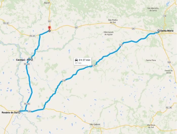 <A class=link-corpo href="https://www.google.com.br/maps/dir/Santa+Maria,+RS/Ros%C3%A1rio+do+Sul,+RS/Cacequi+-+RS/S%C3%A3o+Vicente+do+Sul+-+Rio+Grande+do+Sul/Mata+-+RS/@-29.7177882,-54.3668764,8z/am=t/data=" target=4m35!4m34!1m5!1m1!1s0x9503cb5d0da567bf:0xa44d9c1e7f7f7297!2m2!1d-53.8154499!2d-29.68725!1m10!1m1!1s0x9500e67d09ebcb47:0x36a07de60e08d2d7!2m2!1d-54.9226495!2d-30.2519704!3m4!1m2!1d-54.8736479!2d-30.2363412!3s0x9500e4009f2ccb4b:0x96274c23255fa653!1m5!1m1!1s0x95005370c0c467a7:0x2dd55f166a05fc0b!2m2!1d-54.8225377!2d-29.8887808!1m3!2m2!1d-54.6831806!2d-29.6886469!1m5!1m1!1s0x9501bf938c2f4aed:0xc3e78f8fd1c9623e!2m2!1d-54.4646403!2d-29.5653794!3e0?hl=pt-BR!_blank>> Muito complicado? Confira o passo a passo da rota