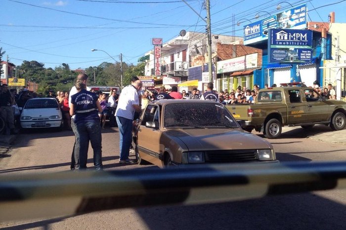 Um homem foi morto e outro ficou ferido por volta das 16h30min, no Bairro Jardim Algarve, em Alvorada. Segundo a Brigada Militar, um motoqueiro teria passado e atirado em direção a um Chevete, que estava na Rua Vinte e Quatro, próximo à avenida Zero Hora.