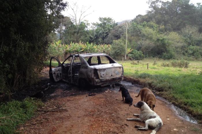 Os suspeitos fugiram em um veículo Renault Logan branco que foi encontrado queimado a menos de 500 metros do local